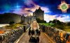 I think the background is over sharp. Look at the extreme contrast on the stone wall. Then the resolutions of the BG and the girl must be quite different. She looks pretty badly compressed. Generally I work with the lowest resolution or up-res a bit at a time and see how much of that an image can stand. I would do that in a separate document. If the model is small or low res and the BG is really large or high res, you need to find a middle ground for combining them, or find different stocks to use.