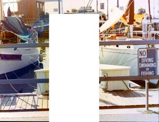 OK, this is a scanned in photo, if you look the boat on the left is/has a bluish cast, while the right one is "greenish" (is my ignorance starting to show ...?). I think it's a reflection in the lens when it was taken, but obviously I'm not sure - at least that's what it appears to be..