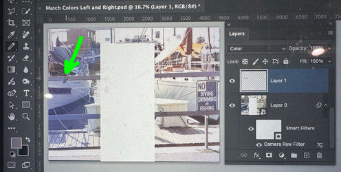 This first picture is after I set the white point on the boat of the right and we are ready to paint colors over the off-color left side.