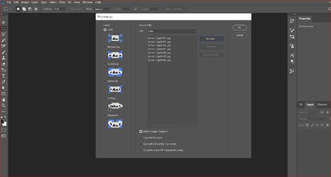 Im using Photoshop 21, I then select Automate,Photomerge,select images then let Photshop do the rest. below are screen grabs of what usually happens.....:-(