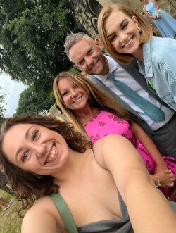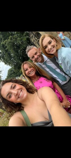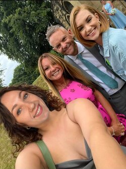 Please would anybody be able to swap a face so that the girl in the white t-shirt’s face (2nd pic) is on the body of the girl on the left with curly hair? The hair could be swapped too or stay as the original, curly hair, whatever is most realistic! :) thanks so much in advance!!